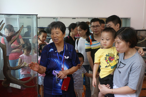 旅程的第一站,走进标本陈列馆。馆内展出了各种珍贵的岩石、矿物、古生物化石标本—记录着地球气候与环境变化信息的岩石、有着“冰与火完美结合”之称的可燃冰、极具观赏价值的水晶玛瑙、蕴含大量生物起源变迁信息的古生物化石等。3位老科学家志愿者用生动易懂又不失科学严谨性的讲解给市民们普及了各种岩石、矿物、古生物化石、矿产资源用途等科学知识,帮助参观者了解地球内部结构、地球环境变迁和人类演化过程。市民们与科学家讲解员进行了积极互动,提出了自己的疑惑与见解,对科学研究表现出了浓厚的兴趣。