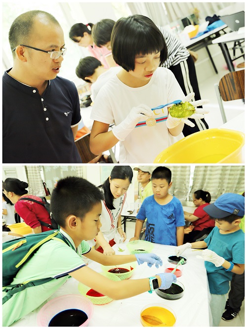 接下来的环节是叶脉标本制作。美好的成果的获得都是不容易的,一旦成功又带给人满足和欢欣!当孩子们带起手套,从强碱热水里捞出叶片,按照老师的指示刷除叶肉时,起初遭遇了许多挫折,要么还未能顺着叶片脉络的方向用力,要么刷得过度。慢慢的,伴随专心和耐性,孩子们开始成功了,“这是我刷出来的第一个叶子”“开始找到窍门了”“呵呵,越刷越容易”“我已经刷了4片了,我还要刷”,经历试错过程的训练蛮有成果。