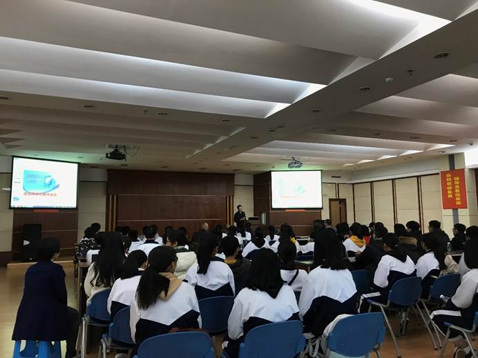 蓝钟中学的行程主要分为三部分,分别听取《能源科学课》报告、参观科普基地和郭华芳的主题讲座。科普老师先通过《能源科学课》带领老师各位和同学走进能源世界,一起揭开新能源的面纱。在参观科普教育基地,依次讲解了生物质能、太阳能、海洋能、地热能、天然气水合物、风能等几种代表性新能源,旨在让同学们了解新能源,激发学习的兴趣。生动有趣的讲解方式吸引了同学们的注意力,引导式的提问也让学生们更好地理解新能源知识。