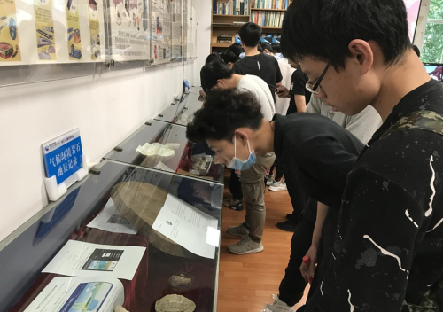 在老科学家和研究生志愿者的引导下,同学们开始了“基础地质课程之旅”。展柜里900余种形态各异的岩石矿物和古生物标本,引得大家不时驻足学习。两位讲解员分组对照馆内各种模型,为同学们讲解了丹霞地貌、喀斯特地貌、火山和地震等自然景观的形成原理和过程,同时结合同学们所学专业,对有关代表性的岩石和矿物的结构、构造以及在工程地质中的应用等地学知识进行了详细讲解。在矿物展区,同学们了解了玛瑙、玉石、石笋的结构组成及其形成原理,以及人造水晶和天然水晶的区别特征;在古生物展区,面对各种虫、鸟、鱼化石、恐龙蛋化石等古生物标本,同学们产生了浓厚的兴趣,不断向讲解员提出疑惑和见解,如三叶虫如何辨别雌雄、恐龙蛋如何保存等问题。