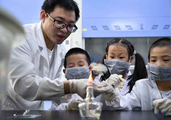 科研人员带领小朋友认识大脑结构和神经干细胞