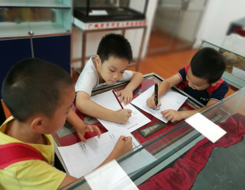 尽管孩子们年纪尚小,他们却对地球“母亲”充满好奇,时而侧着小脑袋认真聆听讲解,时而凑在玻璃展柜上仔细观察,时而又提出五花八门的问题,有的还认真画下了自己喜欢的标本和化石,完全沉浸在探秘的快乐之中。