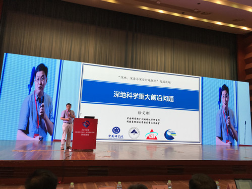 徐义刚应邀作《深地科学重大前沿问题》大会报告。他从21世纪全球地球系统科学的兴起和世界各国对深地科学研究的重视引入,提出整合所有圈层的关联过程与机制是形成地球科学新理论的突破口,并从“深地引擎是什么”、“深地过程与宜居地球”和“深地过程与战略资源”三个环节举例解读深地科学目前面临的重大前沿问题。
