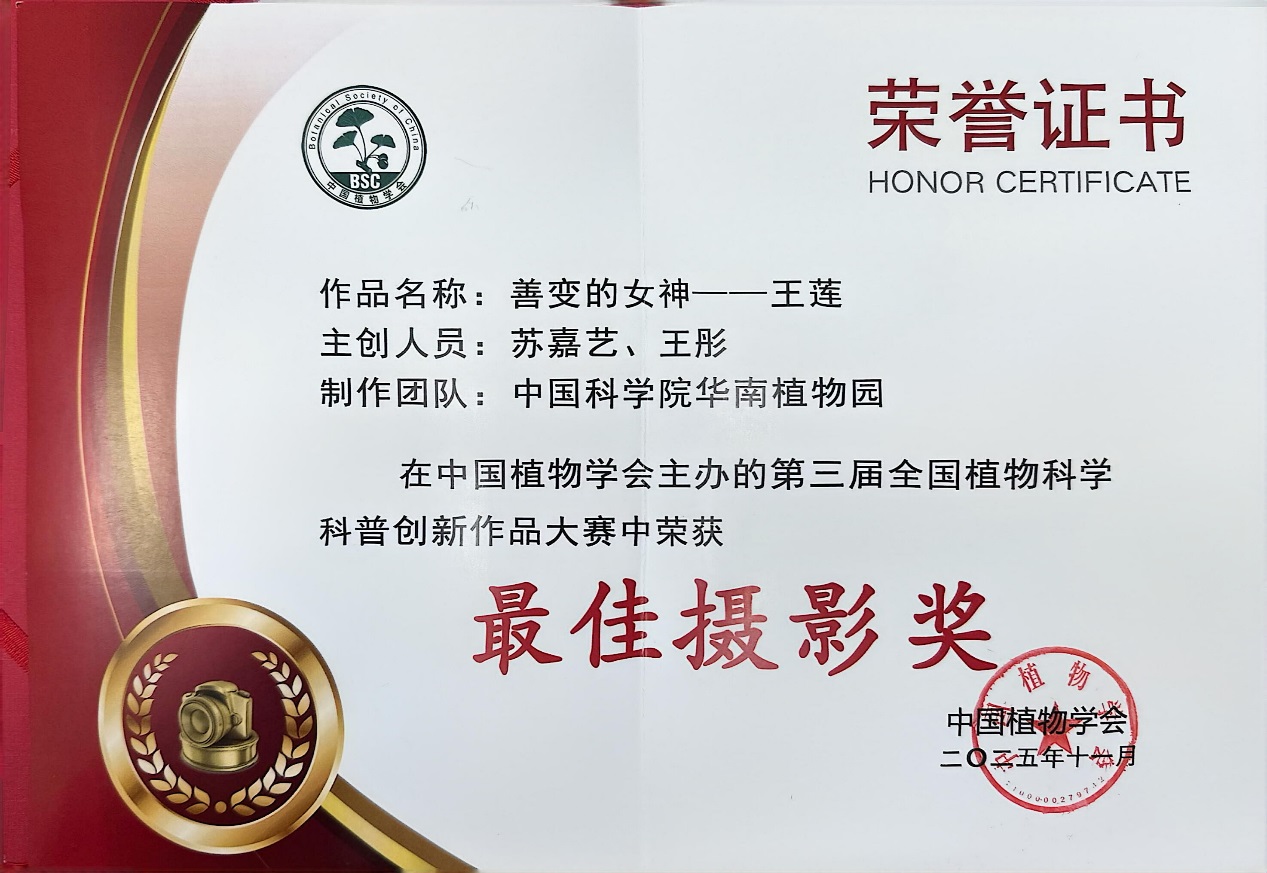 12月8日获悉,第三届全国植物科学科普创新作品大赛总结会在深圳举行。本次大赛由中国植物学会主办,吸引了来自全国各地500余位作者踊跃投稿,共征集短视频、科普文章、科学故事等各类作品180余部。经过专家评审与大众投票(线上访问量超40万次,投票量逾12万),由华南植物园园地管理处报送的两部高质量原创科普作品——《探秘华南国家植物园》和《善变的女神——王莲》,双双荣获银奖,充分展现了华南植物在植物科学普及与自然教育领域的扎实功底。
