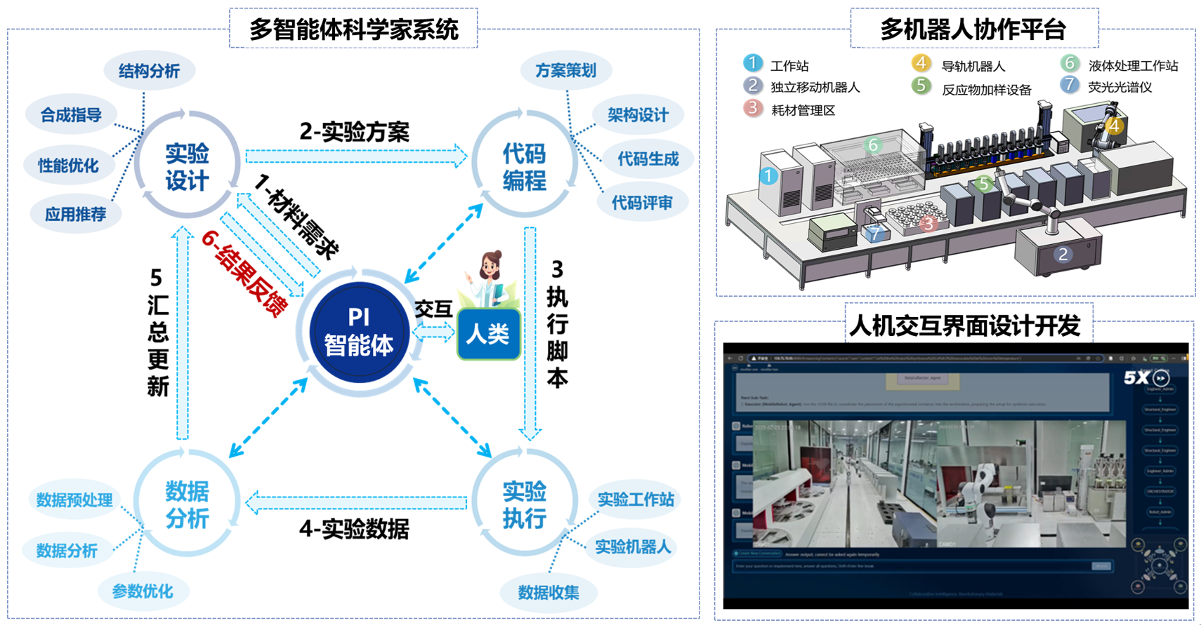 中国科学院深圳先进技术研究院材料人工智能研究中心喻学锋团队成功打造了一支“AI科学家团队”,即命名为“MARS”的“多AI-多机器人”协同智能体系统,并将其用于微胶囊(封装微球)等多种新材料的创制。该成果的相关工作以"Knowledge-Driven Autonomous Materials Research via Collaborative Multi-Agent and Robotic System"为题于1月21日在Cell Press旗下旗舰期刊Matter上发表。新材料研发是一项涉及多学科知识交叉的复杂系统工程,通常面临周期长、成本高、流程繁琐等挑战。特别是在制备阶段,不仅高度依赖个人经验,更存在大量难以言传的技术壁垒,这也是高端材料被“卡脖子”的主要原因之一。近年来人工智能(AI)在辅助材料设计与性质预测方面展现了巨大潜力,但如何突破研发效率瓶颈,解决“材料制备”难题,仍存在巨大挑战。日前,中国科学院深圳先进技术研究院材料人工智能研究中心喻学锋团队成功打造了一支“AI科学家团队”,即命名为“MARS”的“多AI-多机器人”协同智能体系统,并将其用于微胶囊(封装微球)等多种新材料的创制。该成果的相关工作以"Knowledge-Driven Autonomous Materials Research via Collaborative Multi-Agent and Robotic System"为题于1月21日在Cell Press旗下旗舰期刊Matter上发表。深圳先进院研究员喻学锋、高级工程师江国来为论文通讯作者;深圳先进院博士后史桐雨、博士生李玉堂、副研究员王占龙为论文共同第一作者。深圳先进院为该研究第一单位。该研究中,MARS创新性地构建了包含19个大模型智能体的层级化架构,并与包含移动机器人、导轨机器人等在内的“异构机器人集群”深度集成。在实验中,MARS展现了多AI与多机器人之间的高效协同,在极短时间内实现了微胶囊等功能性材料的快速创制与性能优化,将原本4个月的研发时间压缩至4小时。MARS系统的核心在于其多智能体协同的层级化架构。受人类研发团队多角色分工启发,该系统构建了包含“PI” “设计师”“编程师”“实验师”“分析师”五大技术职能组,系统协调19个专业智能体与16种领域特定工具,就像一支分工明确、配合默契的“AI科学家团队”。团队成员各司其职,通过自然语言交互实现任务规划、逻辑推理与决策制定,实现了从任务规划-实验设计-代码编程-实验执行-数据分析的全流程闭环的自主材料探索。团队相关核心专利“一种面向材料科学的多智能体协作系统及方法”已获得授权,并转让给孵化企业武汉中科先进材料科技有限公司(简称中科先材)实施应用。双方共建了“AI科研智能体”创新联合体,获批首批国家级先进功能材料制造业中试平台,建设有全国一流的微胶囊中试产线。团队将MARS与微胶囊中试优化结合,快速完成了灭火微胶囊等多种功能产品的工艺开发和快速优化,多个微胶囊产品已走上货架。此外,团队近日与机器人领域的国家“专精特新”企业深圳慧灵科技有限公司签订“科学智能”创新联合体合作协议,将结合双方优势打造更智能、应用范围更广的“多 AI-多机器人”系统,为自主实验室构建和AI for Science提供更为强大的工具。MARS系统的成功应用,也是具身智能在科学研究领域的一次重要实践。它超越了传统AI 仅能处理数据的局限,初步验证了人工智能作为“决策大脑”,通过标准化接口调度物理设备、操控物质实体的能力。虽然目前仍处于初级的“决策级”探索阶段,但MARS 展示了一种全新的研发范式:即通过“多 AI-多机器人”的深度协同,将不确定的科学探索转化为可计算、可预测、标准化的智能流程。这种人机协同的科研新范式有望将科学家从重复性劳动中解放出来,为新材料等领域的突破提供高效的智能化解决方案。论文链接:https://www.sciencedirect.com/science/article/pii/S2590238525006204?via%3Dihub图1 | MARS(多智能体与机器人系统)的整体架构。图2 | “多AI-多机器人”协同智能体系统。<!--!doctype-->图3 | 武汉中科先进院微胶囊中试线图4 | 灭火微胶囊粉末及微胶囊灭火片