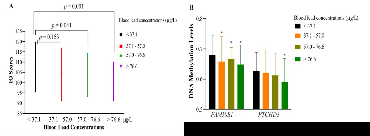 Wan, C.; Pan, S.; Lin, L.; Li, J.; Dong, G.; Jones, K. C.; Liu, F.; Li, D.; Liu, J.; Yu, Z.; Zhang, G.; Ma, H., DNA Methylation Biomarkers of IQ Reduction are Associated with Long-term Lead Exposure in School Aged Children in Southern China. Environ Sci Technol 2020.