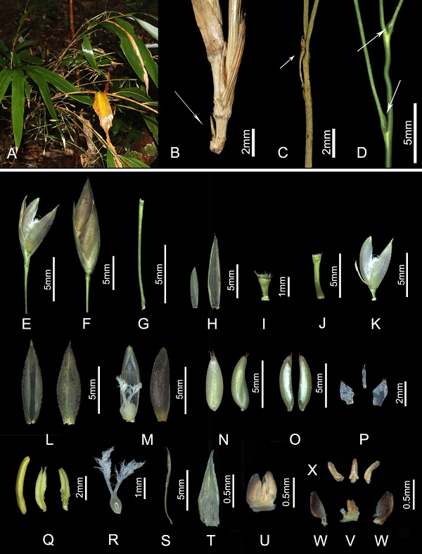 图1. 赤竹(Sasa longiligulata)的花部形态。