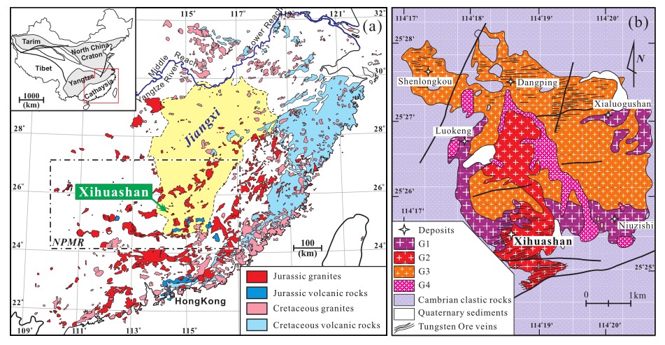 论文信息:Li J., Huang X.L.*, Fu Q., Li W.X. (2021). Tungsten mineralization during evolution of a magmatic–hydrothermal system: mineralogical evidence from the Xihuashan rare-metal granite in South China. American Mineralogist, 106 (3): 443–460.