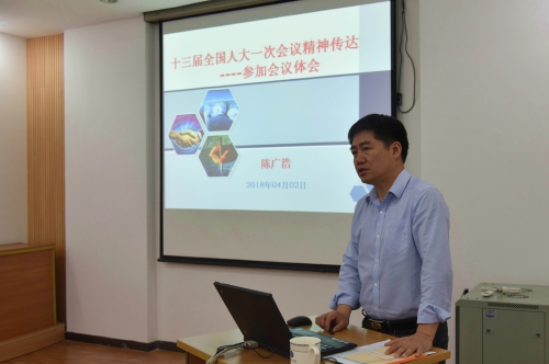 4月2日,中共中国科学院广州分院分党组召开2018年第二季度理论学习中心组(扩大)会议,专题学习十三届全国人大一次会议精神。广州分院分党组成员出席会议,分院机关全体党员列席会议。会议由广州分院分党组副书记、学习中心组副组长周传忠主持。
