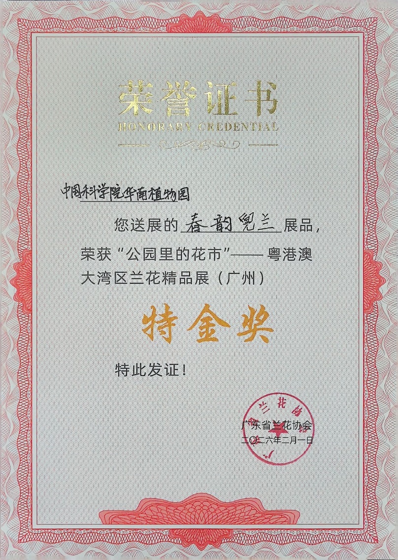 图3. 春韵兜兰获奖证书