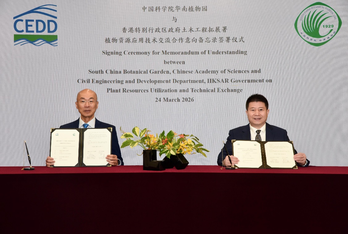 3月23-25日,中国科学院华南植物园主任闫俊华一行应邀访问香港,与香港特别行政区土木工程拓展署(CEDD)签署合作意向备忘录。