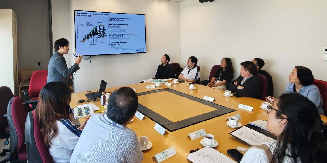 访问期间,华南植物园代表团还应邀参观了香港花卉展,实地调研河套地区、朗原自然生态公园等区域用地可持续发展,与土木工程拓展署等单位进行技术交流,代表团张磊博士分享了《基于自然的森林植被恢复与碳汇策略》的报告。闫俊华主任一行还应邀到香港沙田针山参加植树活动并与香港大学的学生进行交流。