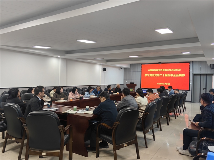 11月5日,中国科学院亚热带农业生态研究所党委召开党委理论学习中心组(扩大)学习会,传达学习习近平总书记在党的二十届四中全会上的重要讲话和全会精神。会议由党委书记谭支良主持。11月5日,中国科学院亚热带农业生态研究所党委召开党委理论学习中心组(扩大)学习会,传达学习习近平总书记在党的二十届四中全会上的重要讲话和全会精神。会议由党委书记谭支良主持。谭支良领学习近平总书记在全会上的重要讲话及全会精神,传达学习中国科学院党组学习贯彻党的二十届四中全会精神中央宣传团报告会精神,同时结合研究所实际,对《中共中央关于制定国民经济和社会发展第十五个五年规划的建议》要点进行解读。副所长谢永宏领学《习近平谈治国理政(第五卷)》,对“一体推进教育科技人才事业发展”章节内容进行重点梳理和详细讲解。所长陈洪松在发言中指出,党的二十届四中全会是在我国即将胜利完成“十四五”主要目标任务,进入基本实现社会主义现代化夯实基础、全面发力的关键时期召开的一次重要会议。各部门负责人要对标全会部署要求,进一步凝练“十四五”规划成效,高质量完成“十五五”规划编制,主动对接国家战略需求和地方发展需求,确保重点任务与国家、院、行业部门和湖南省总体规划和专项规划紧密衔接、有机融合。同时,要破解研究所改革发展“瓶颈”,积极探索科研组织模式、科技评价制度和收入分配制度改革路径,努力在国家重大任务争取、重大科技成果产出、人才队伍建设和重大科研平台等方面取得突破,激发人才创新活力,提升整体运行效能。谭支良提出三点工作要求。一是把学习贯彻全会精神作为当前和今后一个时期的重大政治任务,切实把思想和行动统一到党中央决策部署和院党组具体要求上来,各党支部、各部门要依托“三会一课”、主题党日,结合中心工作进行贯彻落实,确保成效。二是各部门负责人要压实责任,强化忧患意识,深刻理解改革思路,共同营造唯实求真、风清气正的创新生态和创新文化。三是要以全会精神为指引,以监督执纪、安全保密专项督查整改等工作为契机,认真学习警示教育案例,锲而不舍落实中央八项规定精神,推进作风建设常态化长效化,以高质量党建引领保障高水平科技自立自强。会议还学习了安全保密文件精神,观看了违纪违法典型问题案例。与会人员结合所学内容,围绕学习贯彻全会精神、“十五五”规划目标、机制体制改革、贯彻落实中央八项规定精神及实施细则内容和安全保密工作等进行了研讨。会议现场