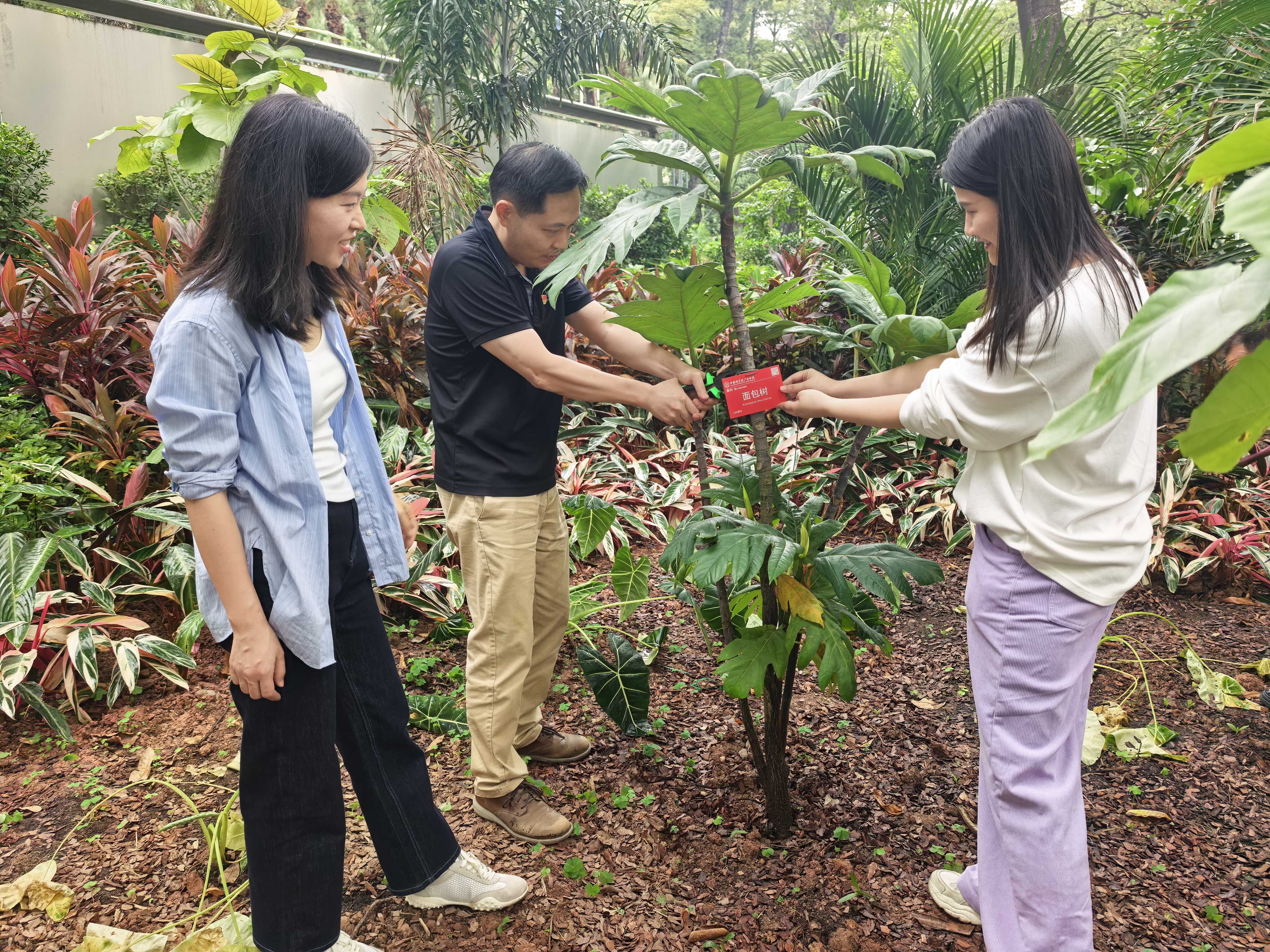主题党日还组织开展了“一树一缘,同心养护”活动。先烈中路100号大院内,绿意盎然。相关负责人介绍了认养树木的意义后,各支部党员亲手为中华无忧树等树木挂上专属树牌。这一块块树牌,不仅是生态承诺的寄托,更是让生态文明理念在亲身参与中深植于心。