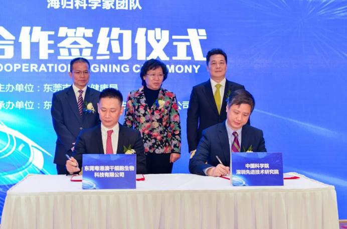 1月24日,中国科学院深圳先进技术研究院与东莞粤港澳干细胞生物科技有限公司共建的“重大疾病生物医学联合实验室”举行签约仪式。深圳先进院党委书记杨建华,东莞粤港澳干细胞生物科技有限公司董事长陈路代表双方签约。