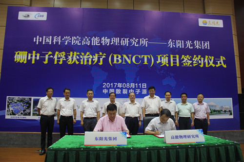 811日,中国科学院高能物理研究所所长王贻芳与东阳光集团董事长张中能,在中国散裂中子源签署了《硼中子俘获治疗(简称BNCT)》项目合作协议,标志着散裂中子源科技成果转化迈出了第一步。双方充分结合高能所在设备研发上的领先优势与东阳光的药物开发能力,有望在未来5年内开启全国治疗肿瘤疾病的新时代。