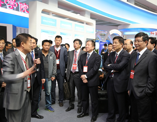 广东省副省长黄宁生,中国科学院党组成员、秘书长邓麦村,科技部原副部长曹健林等领导视察中科院展区