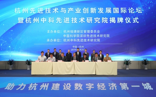 4月25日,杭州先进技术与产业创新发展国际论坛暨杭州中科先进技术研究院(简称杭州先进院)揭牌仪式在杭州市大创小镇国际创博中心举行,重大项目签约仪式同期举行。杭州市人民政府副市长、杭州钱塘新区党工委书记柯吉欣,中国科学院深圳先进技术研究院院长樊建平,中科院上海分院副院长瞿荣辉,国家发改委宏观经济管理编辑部主任宋承敏等出席仪式并致辞。