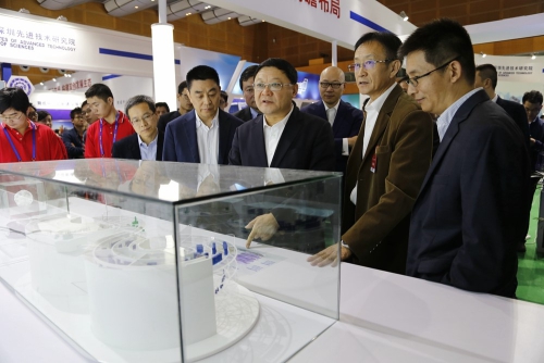 11月19日下午,广东省委常委、深圳市委书记王伟中出席第十九届中国国际高新技术成果交易会(简称“高交会”),第一站就来到中国科学院深圳先进技术研究院位于高交会5号馆的展区参观。深圳市副市长高自民,深圳先进院院长樊建平等陪同参观。
