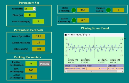 从2017年3月起,科研人员进行中子斩波器的现场调试工作,经过精心调试,所有斩波器的相位控制精度也达到了设计指标,即实现了与加速器触发T0定时信号同步的斩波功能。长期运转测试阶段中子斩波器控制系统工作稳定,相位控制精度在设计指标范围内。在中子斩波器机械安装和控制调试过程中,为保证设备安装和调试能够按进度完成,中子光学系统人员经常放弃周末休息时间,抢抓进度。