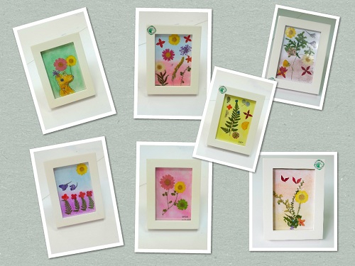 上午是理论知识学习,作为开场暖身,科普老师指导孩子们用五感去发现叶子的秘密,随后通过图文并茂的PPT讲解,让孩子和家长们了解植物花和叶的结构、压花的基本工具和使用、学习采集和处理花材、以及压花画创作的技巧等。理论课后,孩子们进行实操学习,学习微波热压技术。孩子们亲自动手,只需几分钟,鲜活的花朵、叶片像变魔法一样变成了精美干花,这一过程让孩子们兴奋不已。第二课是压花小画框创作学习,孩子们利用自己亲手压制的花材,在老师的指导下,根据自己的创意将花朵、叶片等花材摆拼设计成各种造型,然后再和家长一起仔细地粘贴成画。通过亲子间爱的传递,每个家庭都完成了一幅独一无二的精美作品。在分享环节,孩子们交流创作画作的心得,表达初次进行压花创作的感受,期待在以后的生活和学习中能创作出更多的大自然作品。