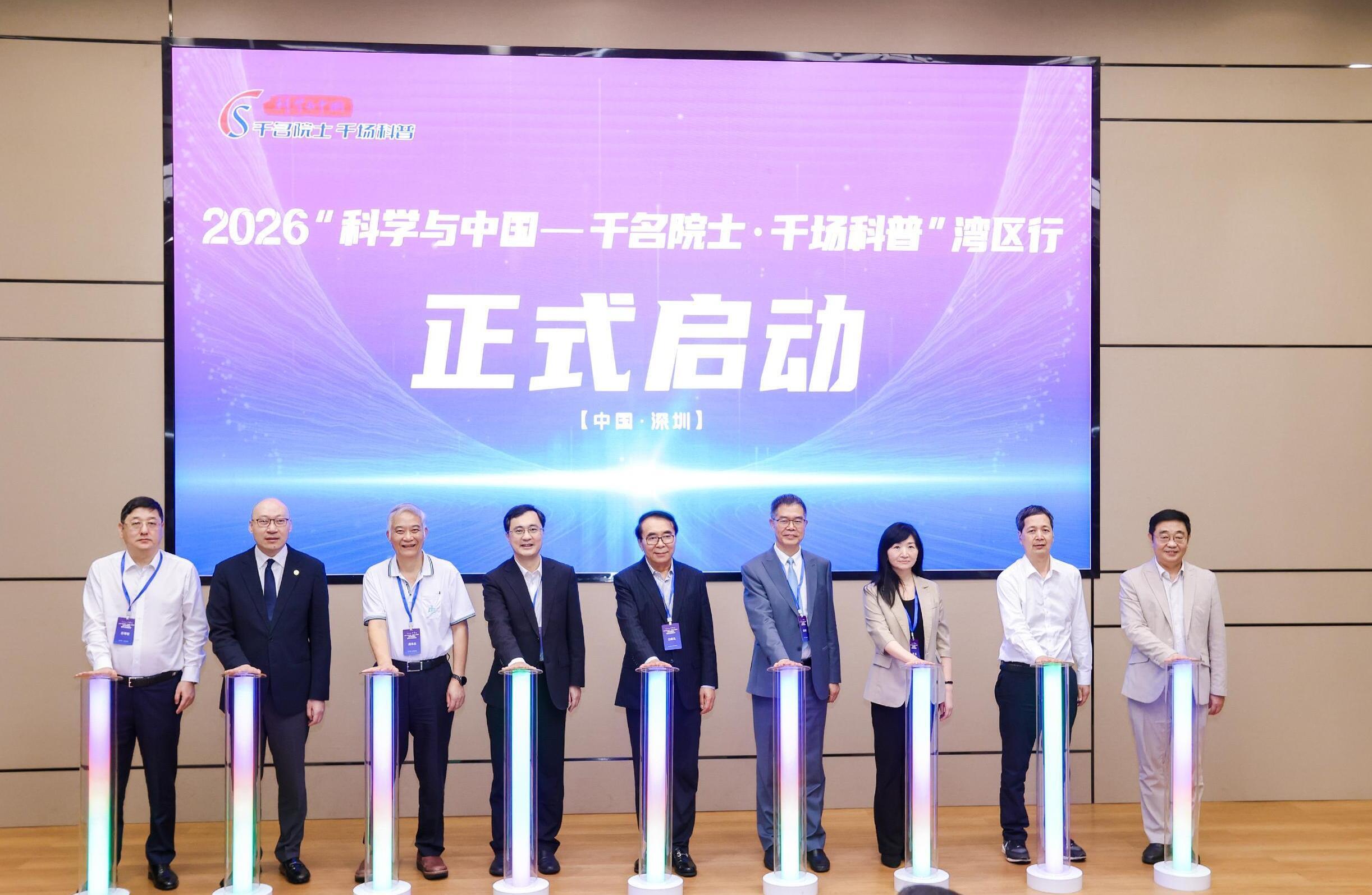 4月8日,2026“科学与中国——千名院士·千场科普”湾区行活动开幕式在深圳举行,15位两院院士齐聚中国科学院深圳先进技术研究院,带来一场科普盛宴。中国科学院院士、中国科学院原院长白春礼,中国科学院学部工作局副局长薛淮,中国科学院广州分院院长任海等领导出席开幕式。