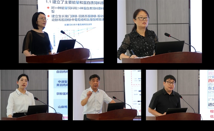 项目汇报环节,项目负责人曾祥芳教授系统汇报了项目总体进展,重点展示了在低蛋白日粮技术体系构建、豆粕减量替代等方面取得的突破性进展。各课题及任务负责人围绕任务目标、考核指标完成情况、标志性成果及存在问题等进行了详细汇报。具体包括:课题一“日粮碳氮适配调节畜禽氮高效利用与沉积的机制”重点关注碳氮养分协同沉积机制;课题二“畜禽低蛋白日粮净能需要及净能赖氨酸平衡模式”深入研究净能与赖氨酸平衡关系;课题三“畜禽低蛋白日粮限制性氨基酸需要及平衡模式”着力探索限制性氨基酸需求规律;课题四“畜禽低蛋白日粮矿物元素需要及电解质平衡模式”重点研究矿物元素需求模式;课题五“畜禽低蛋白低豆粕多元化日粮配制与节粮技术集成”致力于技术体系集成与示范应用。汇报显示,各课题均按计划完成了阶段研究任务,在理论创新和技术突破方面取得重要进展。