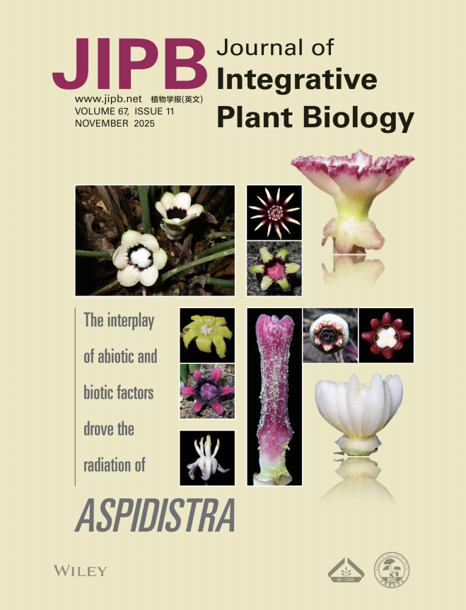中国科学院华南植物园康明研究员团队和广西壮族自治区中国科学院广西植物研究所林春蕊研究员等合作研究成果以题为“The interplay of abiotic and biotic factors likely drove one of the fastest plant radiations from tropical-subtropical Asia”近期发表在国际学术期刊Journal of Integrative Plant Biology (JIPB)(《植物学报》) 上。该研究为理解植物物种快速分化提供了新的见解,并被选为期刊当期封面故事(图2)。中国科学院华南植物园杨丽华博士为论文的第一作者,康明研究员和广西植物研究所林春蕊研究员为论文共同通信作者。法国国家科学研究中心蒙彼利埃进化科学研究所Fabien L. Condamine研究员和广西壮族自治区中国科学院广西植物研究所刘演研究员参与了论文的指导工作。该研究得到了广东省基础与应用基础旗舰项目、中国科学院战略生物资源计划项目和国家自然科学基金项目的资助。文章链接:https://onlinelibrary.wiley.com/doi/10.1111/jipb.70031