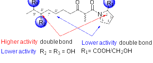 团队以几丁质酶抑制活性为导向,对一株沙虫来源的海洋真菌Penicillium citrinum SCSIO DF147进行深入挖掘,从中发现了5类包括吡咯、吡咯啉、吡咯烷、吡咯里西啶、及开环吡咯烷共15个吡咯啉衍生生物碱(1-15),含5个新化合物 (图1)。为该类化合物的研究奠定了基础。
