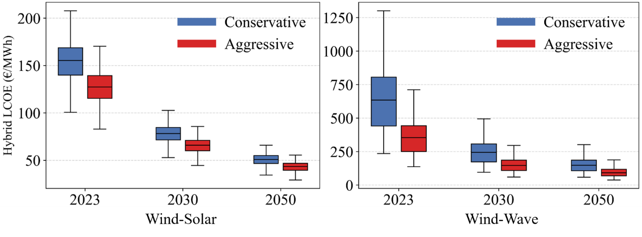 研究表明,总体来看,以风电为基础的互补系统是未来海上多能互补开发的关键方向。其中,风光互补总体上最具经济性,适宜在近海优先布局;风波互补则在南部深水、远海海域展现出较大发展潜力(图5)。该研究有助于推动海上可再生能源从“证明存在互补性”走向“支撑空间规划与开发决策”,也为波浪能通过多能互补路径实现更高效、更经济开发提供了新思路,并为其他海域开展类似研究提供了可迁移的方法框架。