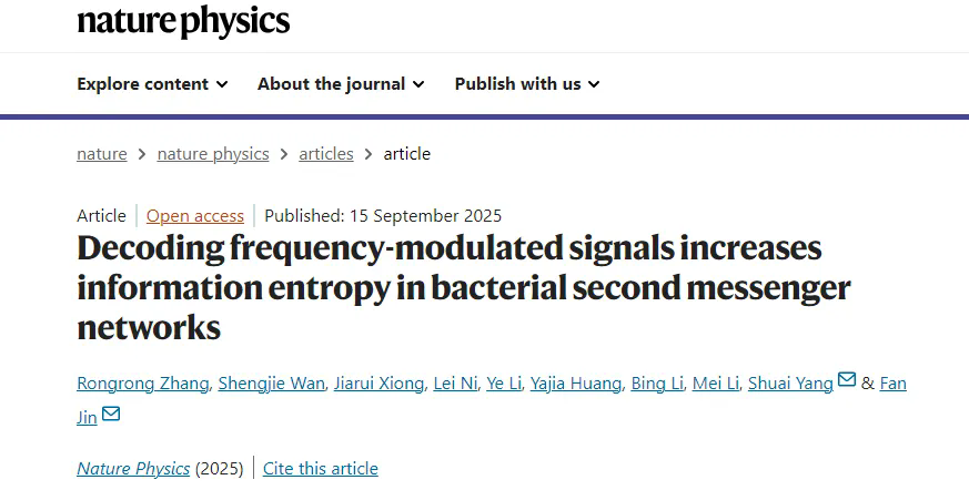 9月15日,中国科学院深圳先进技术研究院定量合成生物学全国重点实验室金帆团队联合中国科学院成都文献情报中心杨帅团队在国际期刊《自然物理》发表最新研究成果,首次破解了细菌频率调制(FM)信号处理的物理密码。研究发现,在三基因调控系统中,频率调制可比传统振幅调制提升约2个比特的信息熵,从而实现对多基因系统的精确协调控制。9月15日,中国科学院深圳先进技术研究院定量合成生物学全国重点实验室金帆团队联合中国科学院成都文献情报中心杨帅团队在国际期刊《自然物理》发表最新研究成果,首次破解了细菌频率调制(FM)信号处理的物理密码。研究发现,在三基因调控系统中,频率调制可比传统振幅调制提升约2个比特的信息熵,从而实现对多基因系统的精确协调控制。这是定量合成生物学全国重点实验室继今年3月揭示细菌信号“编码”规律后,在“解码”机制研究方面取得的又一重要突破。研究显著提升了人工生命系统的理性设计能力,为合成生物学开辟了全新的设计维度。打破传统策略 工程化破解频率解码机制当前,合成生物学面临一项核心挑战:如何仿效自然界实现多个基因的精确协调控制?现有调控方法大多基于“振幅调制”,即调节信号强度来操控基因表达。然而,自然界中普遍存在的振荡现象——从细胞内的钙离子振荡到转录因子的脉冲动态——表明“频率调制”可能是一种更加高效的信息编码方式。“就像收音机可以通过调频(FM)获得比调幅(AM)更清晰的信号一样,细菌也可能利用频率调制来实现更精细的基因调控。”论文通讯作者金帆表示,“但细菌究竟是如何‘解码’这些频率信号的,一直是领域内未解的难题。”研究团队采用合成生物学工程化手段,通过基因编辑技术在铜绿假单胞菌中重构了简化的细菌信号分子环磷酸腺苷(cAMP)信号传递通路,并巧妙利用光控合成系统替代内源性cAMP合成机制,用组成型启动子替代天然的反馈调节系统,成功构建出可精确控制和定量监测的“频率解码cAMP电路”(FDCC)。“这就像是为细菌安装了一个可编程的‘信号接收器’。”论文共同通讯作者杨帅解释道,“我们可以精确控制输入什么样的频率信号,然后观察细菌是如何‘理解’和‘响应’这些信号的。”通过严格的时间尺度分析,研究团队发现FDCC系统天然呈现三个功能明确的模块:“波形转换器”负责将周期性光刺激转化为cAMP的锯齿波浓度变化;“阈值滤波器”借助分子间的协同结合,实现对不同频率信号的选择性过滤;“积分器”则将动态频率信息转化为稳态的蛋白表达水平。该分层架构的精妙设计,在于每一模块均在自己的“最佳工作频率”区间运行,三者协同运作实现了从频率到振幅的完美转换。大设施赋能 频率调制实现信息熵跃升研究团队构建了从微观分子反应到宏观系统行为的多层次理论框架。数学分析发现,关键的无量纲参数如同“频率开关”,控制着系统优先传递高频或低频信号。值得注意的是,该理论预测与实验数据相关性达99.2%,这一精度在复杂生物系统的研究中尤为难得。依托深圳合成生物研究重大科技设施的自动化实验平台,研究团队首次以精准的定量数据,揭示了频率调制的显著优势。自动化实验平台集成可编程光信号控制、细菌培养摇动、自动化溶液处理和荧光测量四个核心功能模块,能够并行处理大量实验样本,并对每个独立样本进行不同参数的光调控。在超过12小时的长时间实验中,该平台表现出优异的稳定性和重现性,96个平行样本的检测指标波动极小,高通量、自动化的实验能力为系统性验证提供了关键保障。通过对大量数据的系统分析,团队发现频率调制可极大提升细菌的信息处理能力。“这意味着通过频率调制,细菌的信息处理能力从‘单车道’变成了‘多车道’,能够精确控制更多基因的表达,最终实现更复杂、更精细的生物功能。”金帆解释道。“频率调制以更简洁的遗传结构,为合成生物学带来了更精准、更复杂的调控新维度,将显著提升代谢工程中多通路协调优化与细胞治疗中响应性设计的能力。”据团队介绍,定量合成生物学全国重点实验室聚焦世界科技前沿,围绕生命功能涌现性原理,建立起定量合成生物学底层理论框架。目前,团队依托深圳合成生物研究重大科技基础设施系统构建了“定量解析-理性设计-自动构建”全链条创新体系。该设施实现了从菌株设计、构建、测试到学习的工程化闭环,显著提升了合成生物底盘菌株的研发与筛选效率。文章上线截图原文链接:https://www.nature.com/articles/s41567-025-03030-4