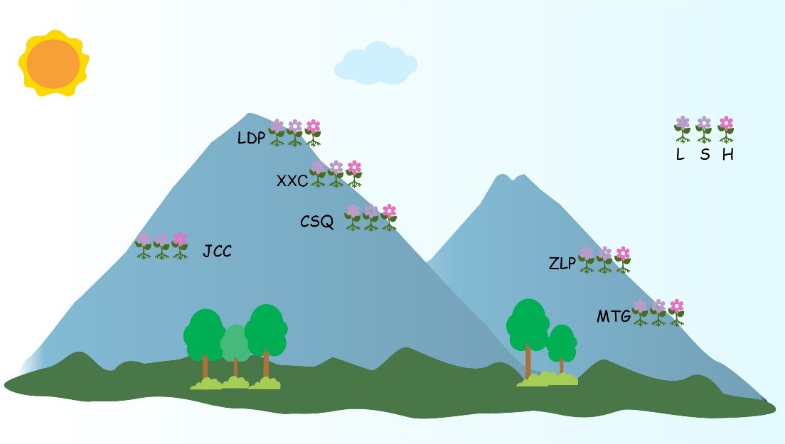 植物交配系统的演化是进化生物学的核心议题之一。在开花植物中,从异交(outcrossing)向自交(selfing)的转变代表了一个主要演化趋势。该这一过程通常被认为由生态因素(如传粉者缺乏)和繁殖保障机制共同驱动。然而,现有的研究鲜少通过移栽实验来检验生态因子与繁殖保障在交配系统演化中的作用。此外,少有研究从父本视角评估交配过程中个体对后代的遗传贡献。近日,华南植物园利用迎阳报春(Primula oreodoxa)这一理想研究系统,通过精巧的移栽实验揭示了这一过程的生态与遗传机制。研究团队在四川峨眉山海拔梯度上建立了6个移栽实验点(图1),将二型花柱(异交为主)和同型花柱(自交为主)植株在同一环境中栽培。通过野外观察与SSR分子标记相结合,系统分析了不同花型个体的繁殖适合度(结实率、种子数量)和交配模式(自交率、配偶多样性、花型间交配比例及子代遗传多样性)。主要发现包括:(1)在传粉资源受限的高海拔生境中,同型花柱表现出显著的繁殖优势,支持"繁殖保障"假说;(2)父母本自交率随海拔升高而增加,表明环境因素对交配系统具有调控作用(图2);(3)长喙传粉者访花频率与二型花柱的父母本自交率呈负相关,与父母本配偶多样性呈正相关(图3);(4)高海拔种群中交配模式趋于随机,反映了二型花柱多态性的瓦解(图4)。该研究创新性地从父本视角分析交配模式,并且首次证实长喙传粉昆虫的访花频率与植物父母本自交率呈负相关,而与父母本的交配多样性呈正相关,为“传粉驱动交配系统演化”提供了关键实证。该发现对理解全球变化下植物-传粉者互作的演变以及生物多样性的维持具有重要意义。相关研究成果以“Divergence of mating systems in Primula oreodoxa: Insights from transplant experiments and mating portfolios”为题,近期发表在植物学期刊Plant Diversity上。 中国科学院华南植物园已毕业博士曾桂(现为西华师范大学讲师)为第一作者,中国科学院华南植物园袁帅副研究员和张奠湘研究员为共同通讯作者,海南师范大学张凯副教授参与了研究工作。 该研究得到国家自然科学基金、中国科学院华南植物园青年人才项目及西华师范大学博士科研启动基金资助。文章链接:https://doi.org/10.1016/j.pld.2025.08.005图1. 移栽实验设计示意图图2. 低海拔与高海拔生境中不同种群和花型的母本自交率 (A,B) 与父本 (C,D) 自交率(± 标准误)。不同小写字母和大写字母分别表示低海拔与高海拔生境内的显著差异,希腊字母表示生境间差异。图3. 交配系统参数与长喙传粉者访花频率在不同花型间的关系。母本自交率 (A–C)、父本自交率 (D–F)、母本配偶数 (G–I) 和父本配偶数 (J–L)。左、中、右三列分别对应 L、S 和 H 三种花型。图4. 不同种群和花型间雌性非选型交配(平均值 ± 95% 置信区间)的变异。虚线表示随机交配。