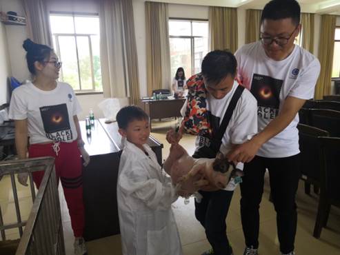 以猪年话猪:我与猪的第一次“亲密接触”为主题,亚热带生态所组织开展了观看海归院士养猪记视频、“走进二师兄”科普报告、互动体验、有奖问答及图片展等形式的活动。在互动体验区,通过“抱抱小猪”环节,让小朋友仔细辨别2种不同类型小猪异同点;通过“一起喂小猪”环节,选取不同食材,了解猪饮食偏好;通过“显微镜观测猪肠道形态结构”,获知消化功能差异。