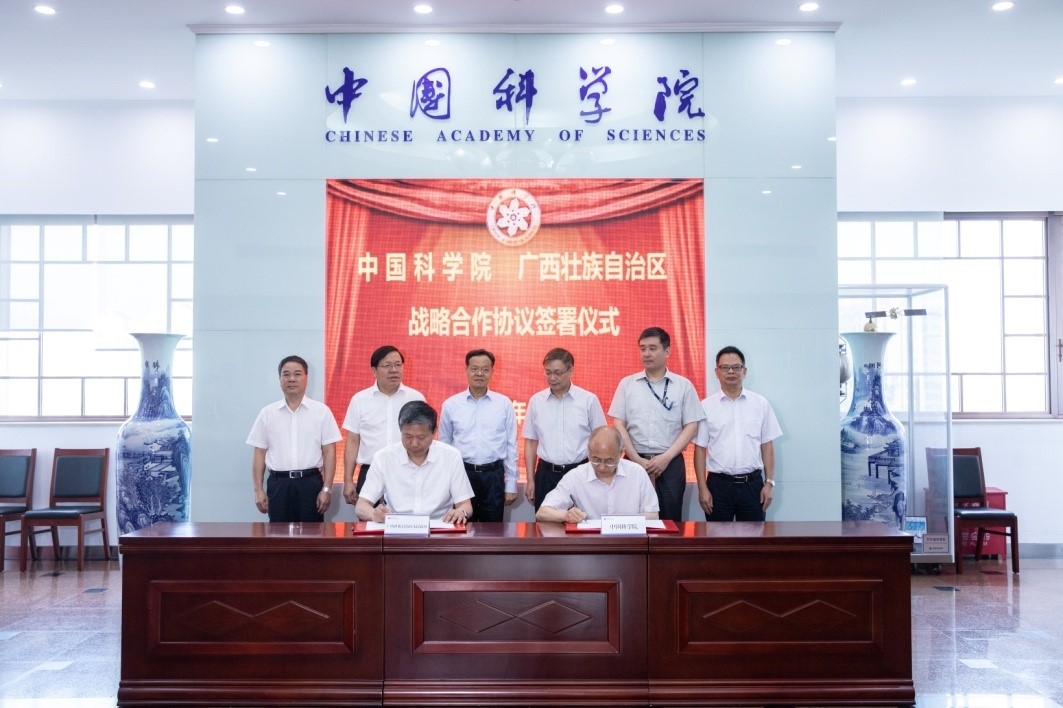 在双方领导见证下,院区有关单位还签署了《共同设立“中科院-广西联合科技服务网络计划(STS)专项”合作协议》《关于共建地球大数据东盟区域平台及服务合作框架协议》等5份合作协议。