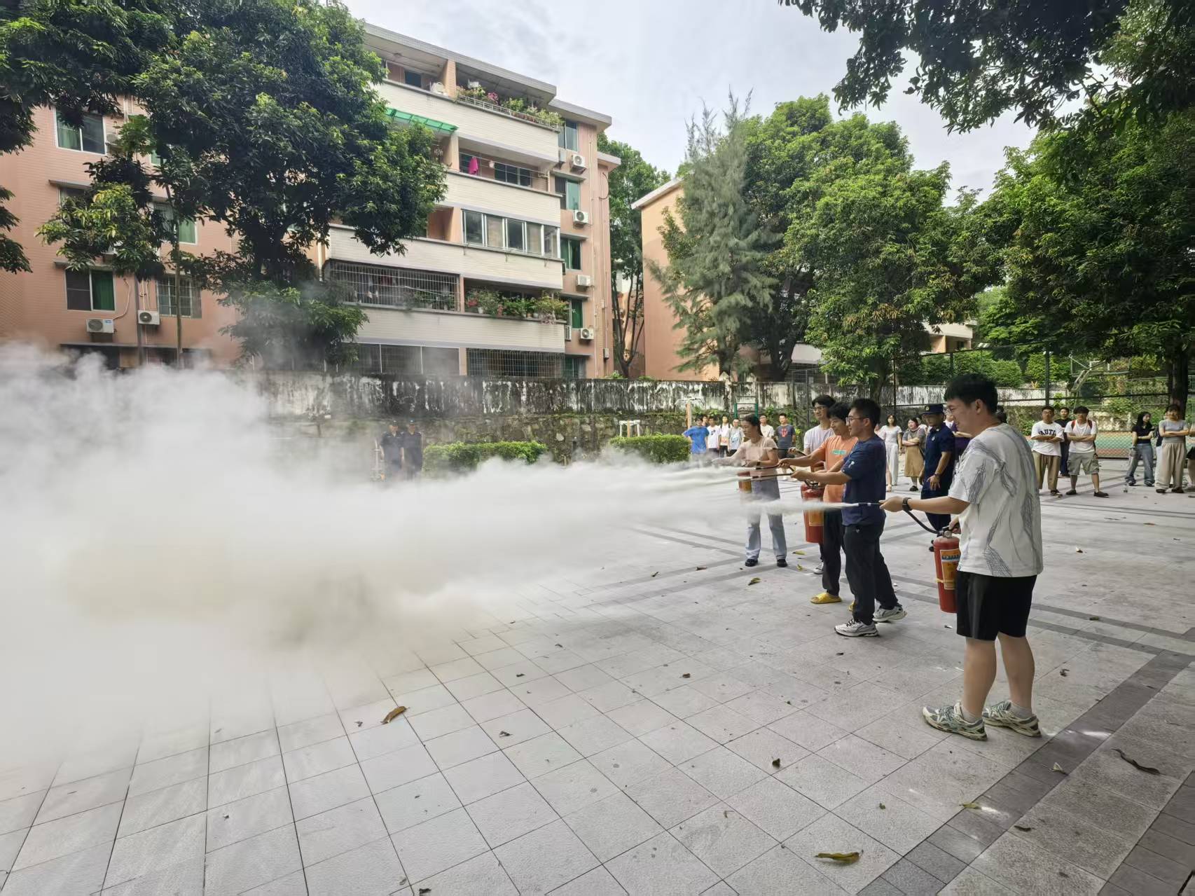 理论知识的学习最终要落到实践操作上,本次安全教育活动的最后环节设置了消防疏散演练、灭火演练实操。演练由五山消防救援站教官主导,按“先疏散、后灭火”流程进行。疏散演习模拟“会议室火灾”,指导参训者低姿弯腰、捂口鼻疏散,纠正不规范行为;灭火演练中,教官演示灭火器操作要领,组织参训者轮流实操,一对一指导,确保人人掌握技能。