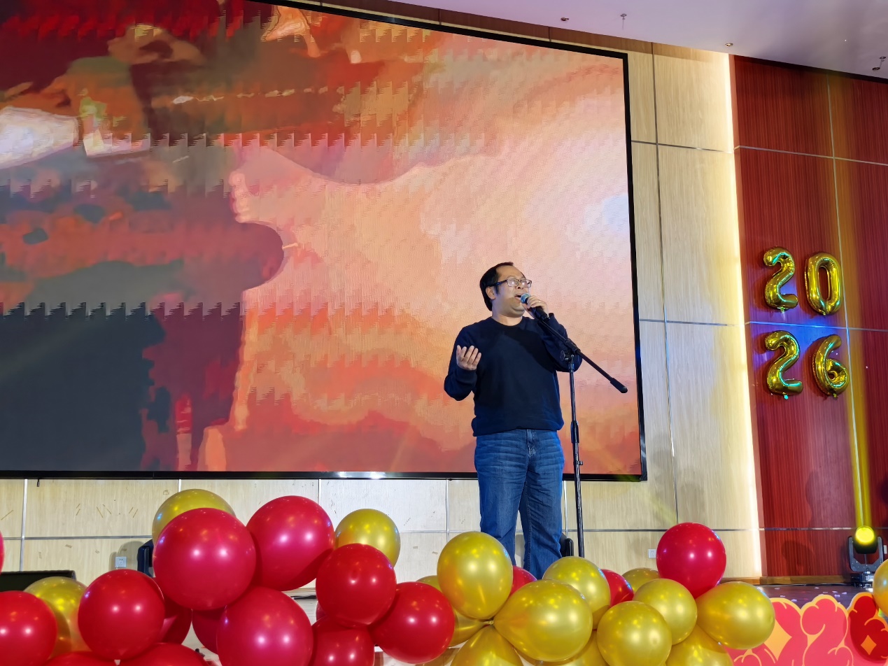 联欢会伊始,张海祥代表所领导班子对来到现场的师生表示热烈欢迎,随后回顾了广州地化所在2025年开展的重点工作和取得的丰硕成果。他指出,2025年研究所认真贯彻落实院重点工作安排,紧密围绕抢占科技制高点、“十五五”规划编制等核心任务,聚焦“深地过程与战略资源”和“区域环境污染防治”两大领域,各项工作取得了良好进展;在人才培养方面,研究所也再创佳绩。他代表领导班子对全体师生的辛勤付出表示衷心感谢,希望大家在新的一年里,始终遵循研究所“敬业、勤业、精业、乐业”的创新文化,将个人科研追求融入国家发展大局,为研究所高质量发展、努力抢占科技制高点贡献自己的力量!祝愿全体师生新年快乐,祝愿本次联欢会圆满成功!
