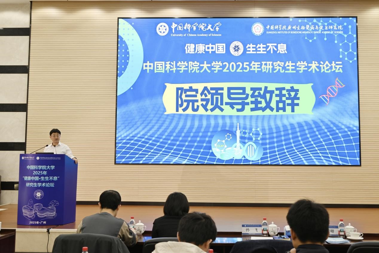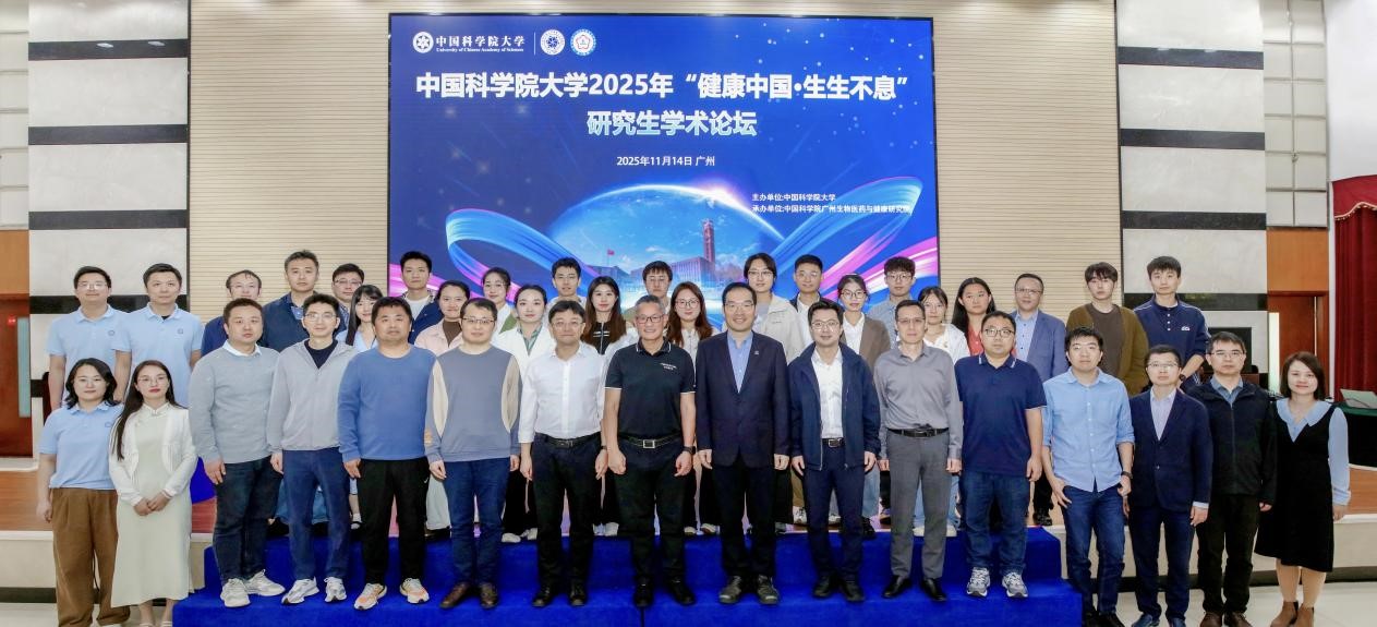 11月14日,由中国科学院大学主办、中国科学院广州生物医药与健康研究院(以下简称“广州健康院”)承办的中国科学院大学2025年“健康中国·生生不息”研究生学术论坛在广州举行。本次论坛紧扣国家“健康中国”战略,聚焦生命科学、医学、药学等前沿学科交叉,吸引了全国20余所高校及科研院所的300余名专家学者及青年学子参会。