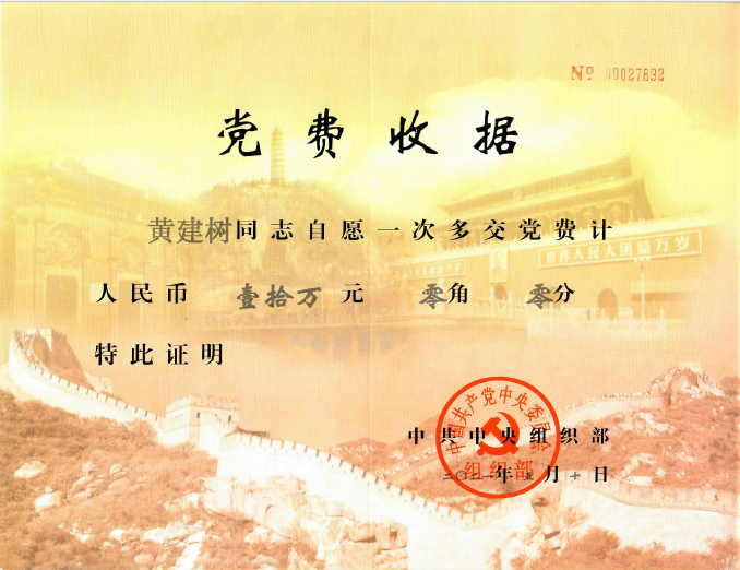 十万元党费收据