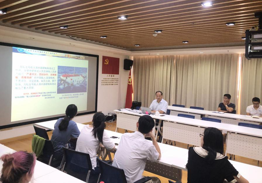 为加强党员党性教育,促进党建工作和业务工作的深度融合,9月18日,科学部第一党支部和第二党支部在综合楼905党群活动室联合组织开展了“解读中国载人深潜精神”专题党课活动,邀请所首席顾问刘心成主讲。