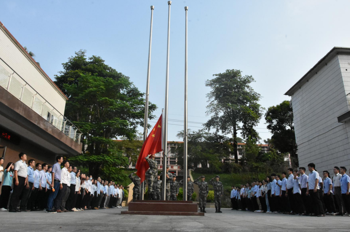 9月30日,为庆祝中华人民共和国成立72周年,进一步在广大团员和青年职工、研究生中深入开展党史学习教育,中科院广州化学有限公司(广州化学)团委在办公楼前广场举办“庆国庆、升国旗”活动,广州化学全体团员、青年职工、研究生150余人参加活动。