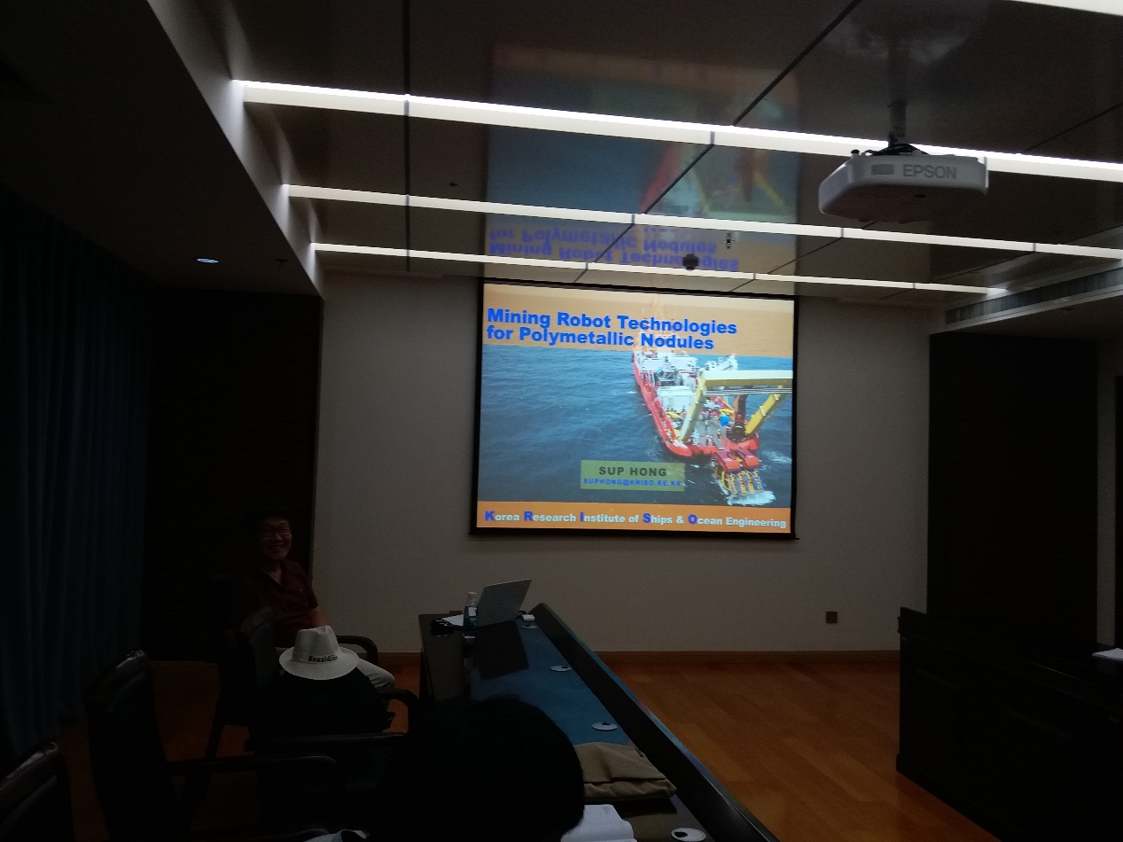 8月1日,应中国科学院深海科学与工程研究所邀请,韩国船舶与海洋工程研究所KRISO的SUP HONG研究员到该所进行学术交流,并做了题目为“Mining Robot Technologies for Polymetallic Nodules”的学术报告。