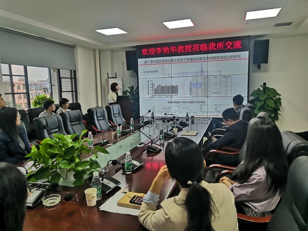 李艳华作了题为“中兽药现代化研究的思考”的学术报告,介绍了我国中兽药的发展现状,强调了我国畜牧生产中建立和完善中兽药标准的重要性,并分享了团队在中兽药有效成分分析技术的优化及研发以紫丁香叶中黄酮类为有效成分新兽药的研究进展。会后,李艳华教授和与会人员就中药复方二次开发展开了讨论和交流,并对后者在中兽医领域的发展前景进行了展望。