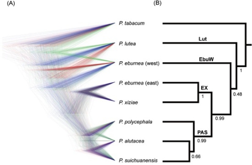 中科院华南植物园科研人员采用多基因分子标记研究了牛耳朵复合群的物种边界、遗传分化和基因流动态。物种边界模型分析显示,牛耳朵复合群物种间的边界与形态分化吻合,但广布种牛耳朵存在两个独立的进化单元。物种边界划分也和物种的地理分布边界一致,它们均为严格的异域分布。基因流模型研究结果显示,牛耳朵复合群在物种分化的过程中存在历史基因流。基于物种花形态表型分析结果显示,物种间数量性状的分化与遗传分化基本一致,表明中性过程可能是物种分化的主要进化驱动。这些研究结果也为报春苣苔属的保护策略提供了重要启示。