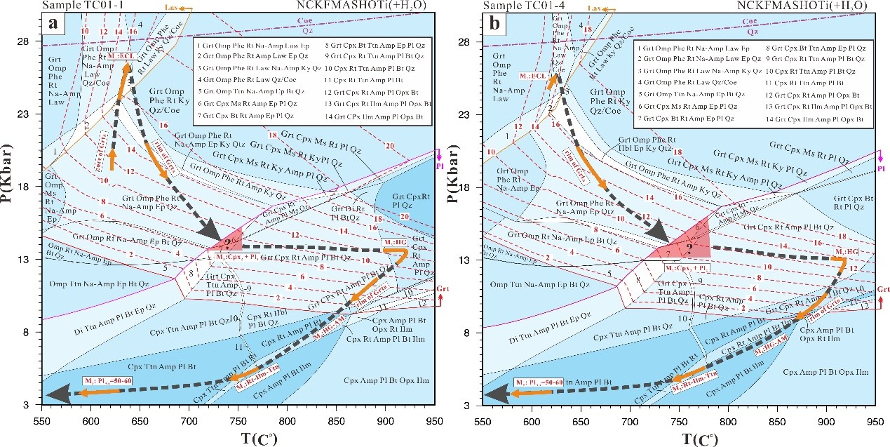 图1 班公湖-怒江带洞错地区榴辉岩的相平衡模拟及P-T轨迹