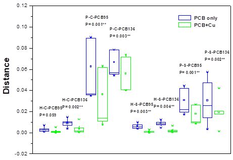 图2 铜离子对手性PCBs对映体在植物体内组成特征的影响