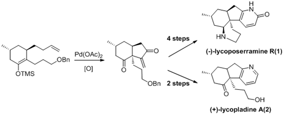 广州生物院研究员邱发洋的课题组采取新的策略,从易得的手性源(5R)-5-甲基-2-(苯硫基)环己酮出发,通过Michael加成,钯催化的分子内烯醇硅醚和烯烃的偶联等关键反应合成得到共同中间体,再通过不同的转化,分别以9步和7步完成了Lycoposerramine R和Lycopladine A的全合成。