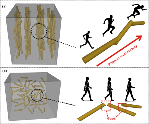 图2.三维氮化硼-石墨烯网络的导热原理示意图