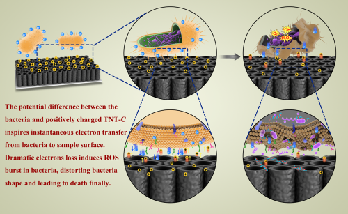 相关论文“An antibacterial platform based on capacitive carbon-doped TiO2 nanotubes after direct/alternating current charging(一种基于碳掺杂二氧化钛纳米管电容特性的新型抗菌平台)”发表在国际知名学术期刊《自然·通讯》(Nature Communications),论文的第一作者是香港城市大学博士生/深圳先进院客座学生王国敏,北京纳米能源所封红青博士为并列第一作者。
