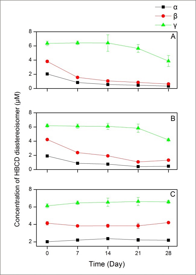 图 2氯呼吸菌Dehalococcoides mccartyi对α-HBCD、β-HBCD和γ-HBCD的厌氧降解
