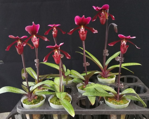 “紫旗兜兰”(Paphiopedilum ‘Ziqi’)、“紫光兜兰”(P.‘Ziguang’)和“紫君兜兰”(P.‘Zijun’)都是2006年以红旗兜兰(P. charlesworthii)为母本、“黑光兜兰”(P. ‘Black Light’)为父本进行杂交,经无菌播种、单原球茎选择、组培快繁选育而成。多年多点试验结果表明,其遗传性状稳定一致。
